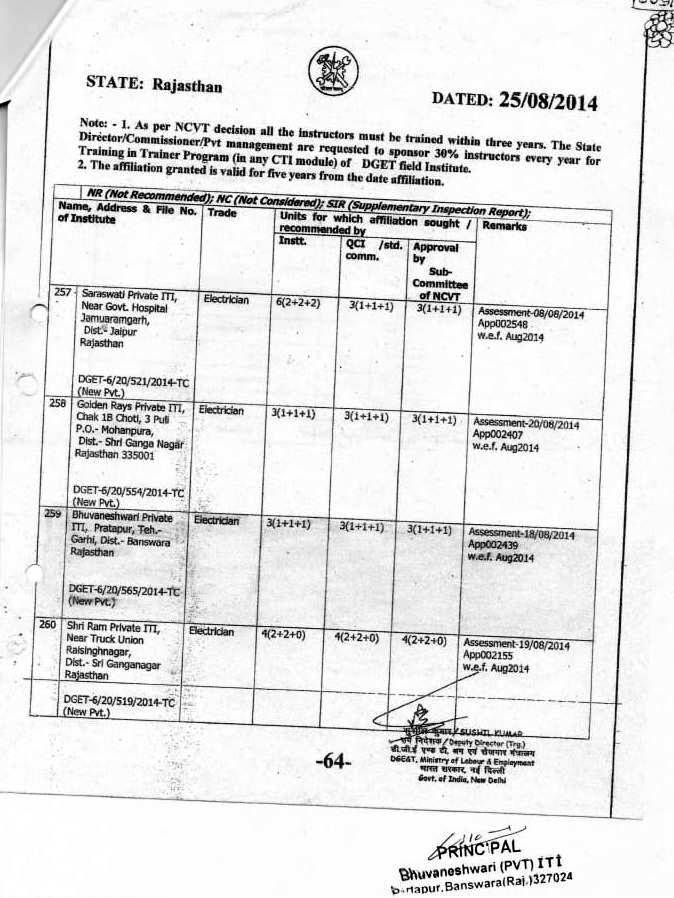 Name of the Institute Bhuvaneshwari Private ITI Partapur